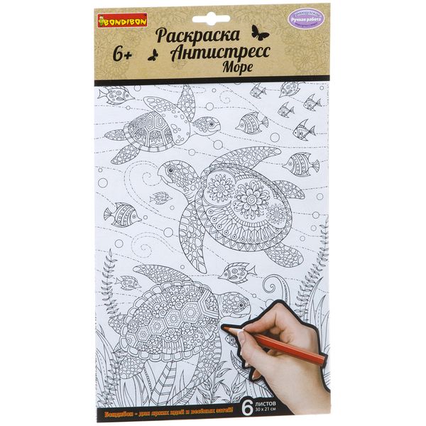 Набор раскрасок антистресс BONDIBON, Море, 6 листов 30х21 см, арт. CPA2310V