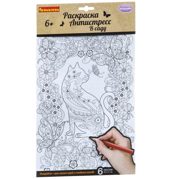 Набор раскрасок антистресс BONDIBON, В саду, 6 листов 30х21 см, арт. CPA2306V
