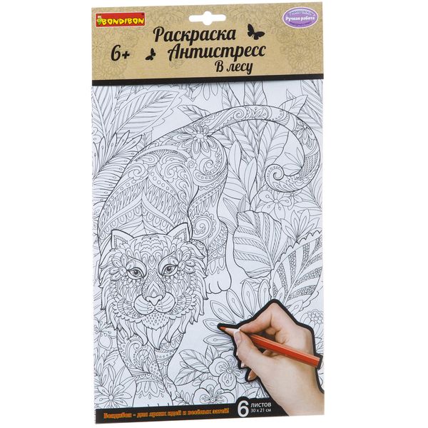 Набор раскрасок антистресс BONDIBON, В лесу, 6 листов 30х21 см, арт. CPA2316