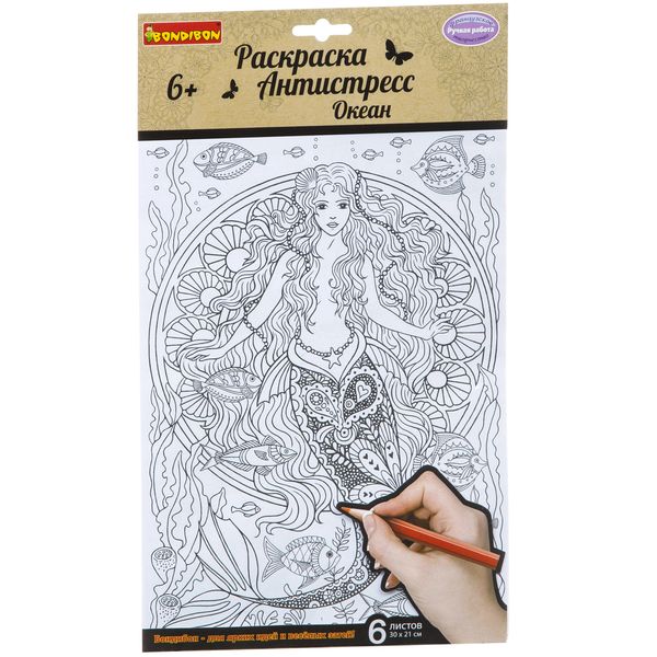 Набор раскрасок антистресс BONDIBON, Океан, 6 листов 30х21 см, арт. CPA2301V