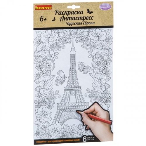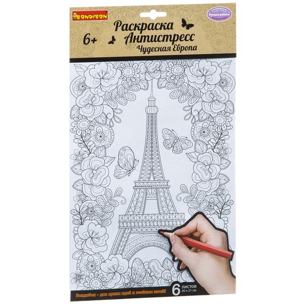 Набор раскрасок антистресс BONDIBON, Чудесная Европа, 6 листов 30х21 см, арт. CPA2307V