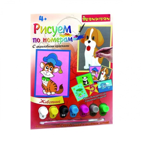 Набор Рисуем по номерам с акрил кр., Bondibon, Животные, 22x29 см, арт. PNF-19
