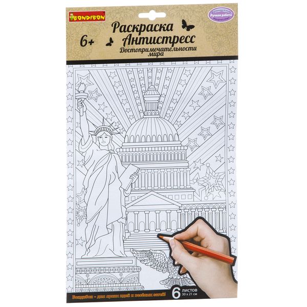 Набор раскрасок антистресс BONDIBON, Достопримечательности мира, 6 листов 30х21 см, арт. CPA2308V
