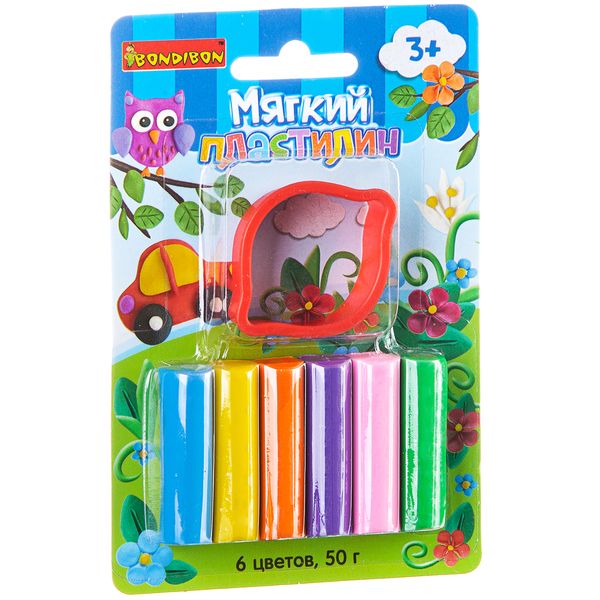 Мягкий пластилин с формочкой, Bondibon, 6 стандарт цв., 50 гр., CRD, арт. ST-50-6+SM