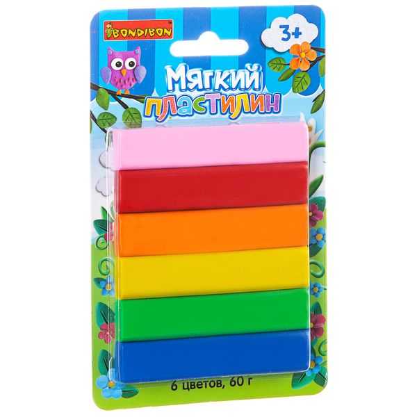 Мягкий пластилин, Bondibon, 6 стандарт цветов, 60 гр., CRD, арт. ST-60-6
