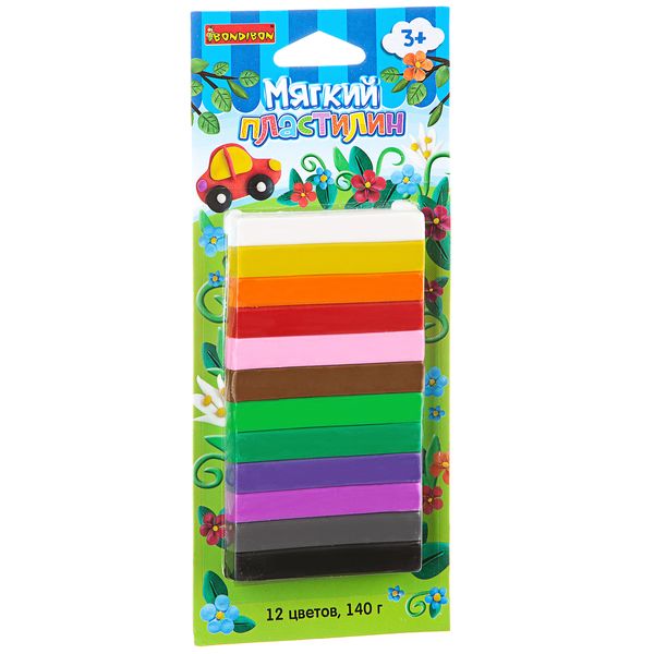 Мягкий пластилин, Bondibon, 12 стандарт цветов, 140 гр., CRD, арт. ST-140-12