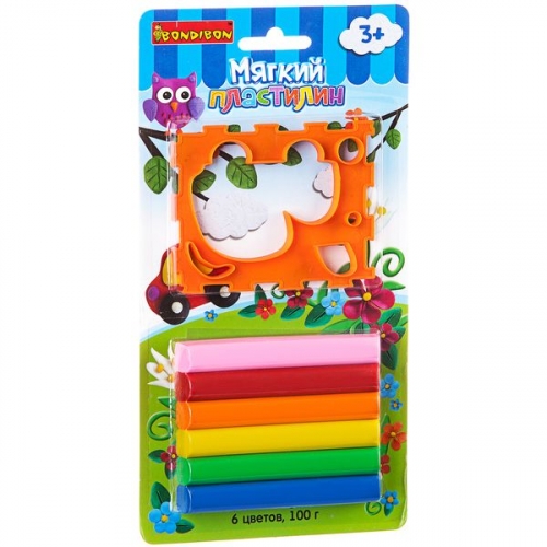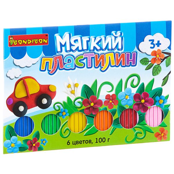 Мягкий пластилин, Bondibon, 6 стандарт цветов, 100 гр., CRD, арт. ST-100-6
