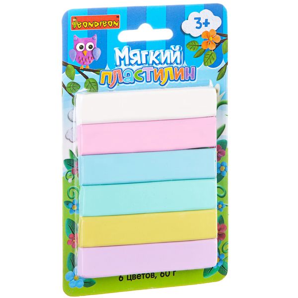 Мягкий пластилин, Bondibon, 6 пастель цветов, 60 гр., CRD, арт. ST-60-6