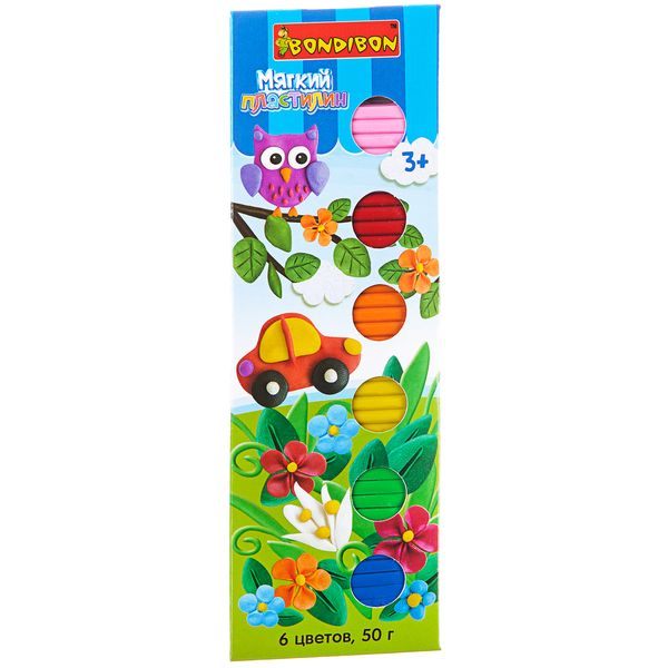Мягкий пластилин, Bondibon, 6 стандарт цветов, 50 гр., BOX, арт. SFT-50-6