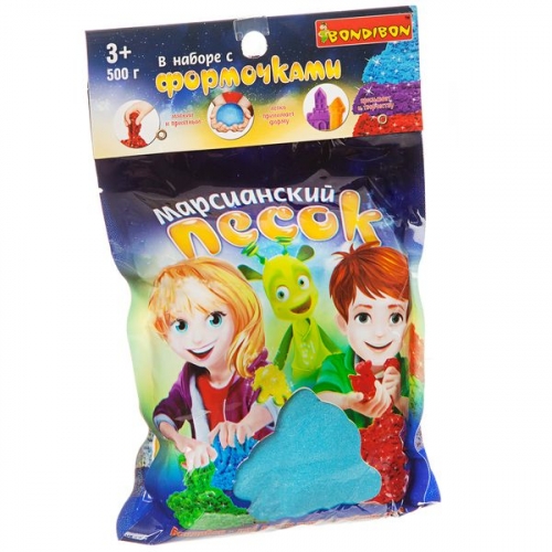 Набор игровой Вondibon "Марсианский песок", 500г голубой, 4 формочки 3D из двух частей.