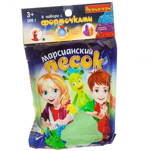 Набор игровой Вondibon "Марсианский песок", 500г зелёный, 4 формочки 3D из двух частей.