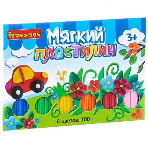 Мягкий пластилин, Bondibon, 6 стандарт цветов, 100 гр., BOX, арт. SFT-100-6