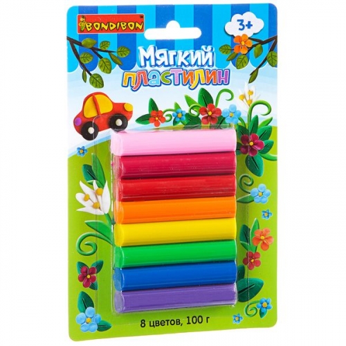 Мягкий пластилин, Bondibon, 8 стандарт цветов, 100 гр., CRD, арт. ST-100-8