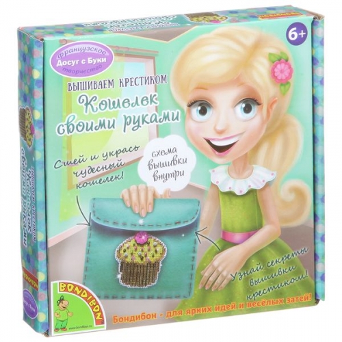 Набор для творчества BONDIBON. Вышиваем крестиком! Кошелек своими руками ( пирожное ) Арт.0017