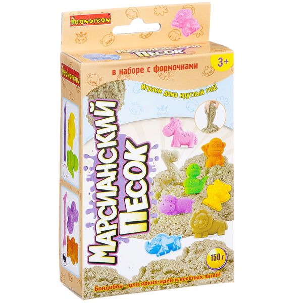 Набор игровой Вondibon "Марсианский песок", 150г бежевый, 2 формочки ( животные), 1 стек, в ассорт.