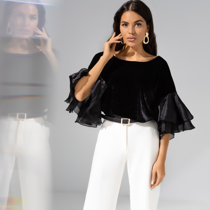 Блуза из бархата и органзы, Молниеносная влюбленность (black)