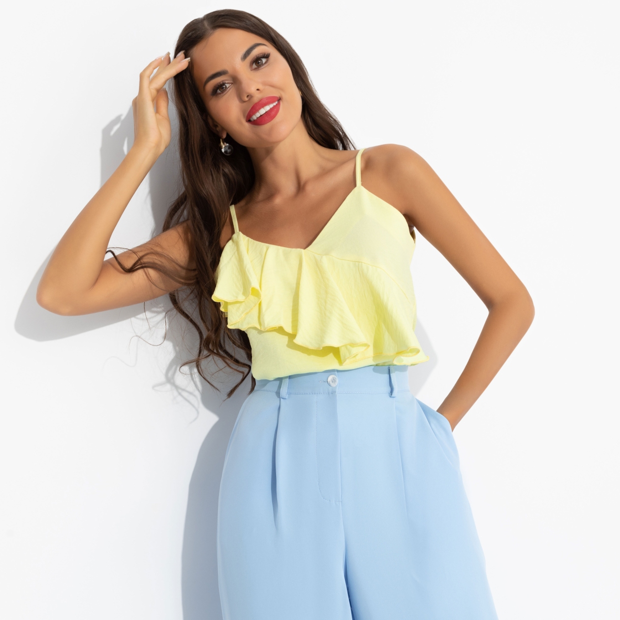 Топ из вискозы с воланами, Смотри не засмотрись (мятный)