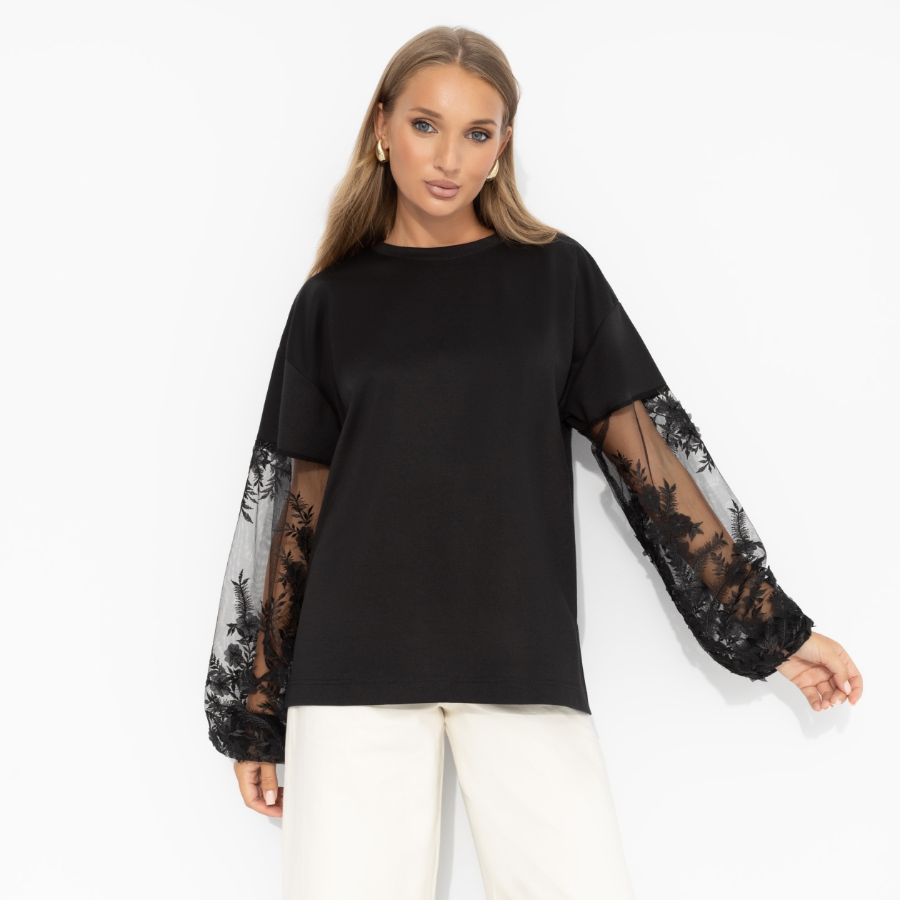 Рубашка с ажурной спинкой и сборками, Невозможно оторваться (черная)