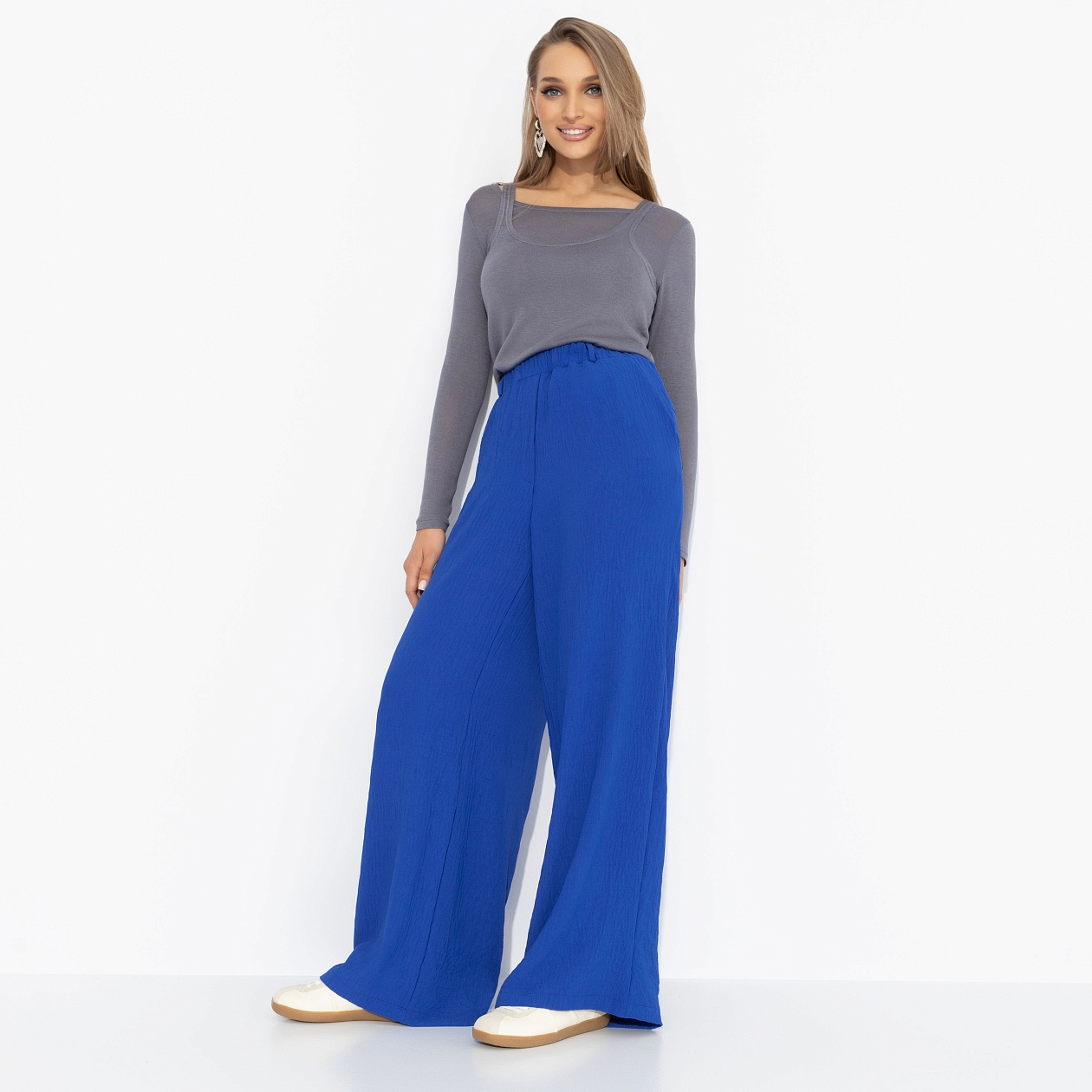 Брюки свободного силуэта, Легкость льна (голубые)