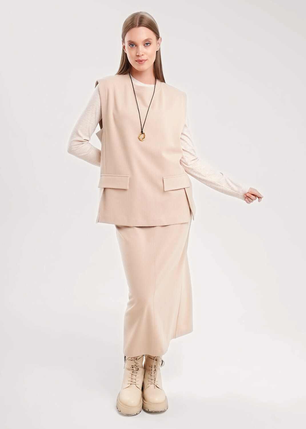 ст. цена1770руб.! CLEVER Юбка 157028/190ввэт.бежевый/св.бежевый