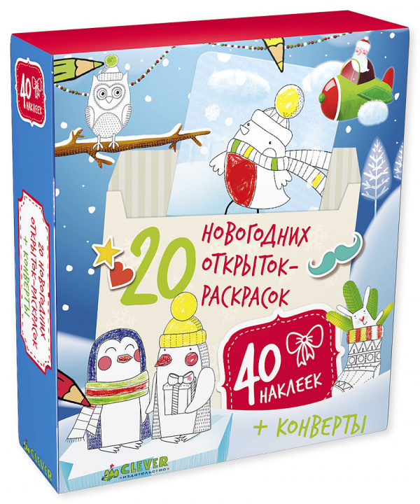 НГ. 20 новогодних открыток-раскрасок с наклейками