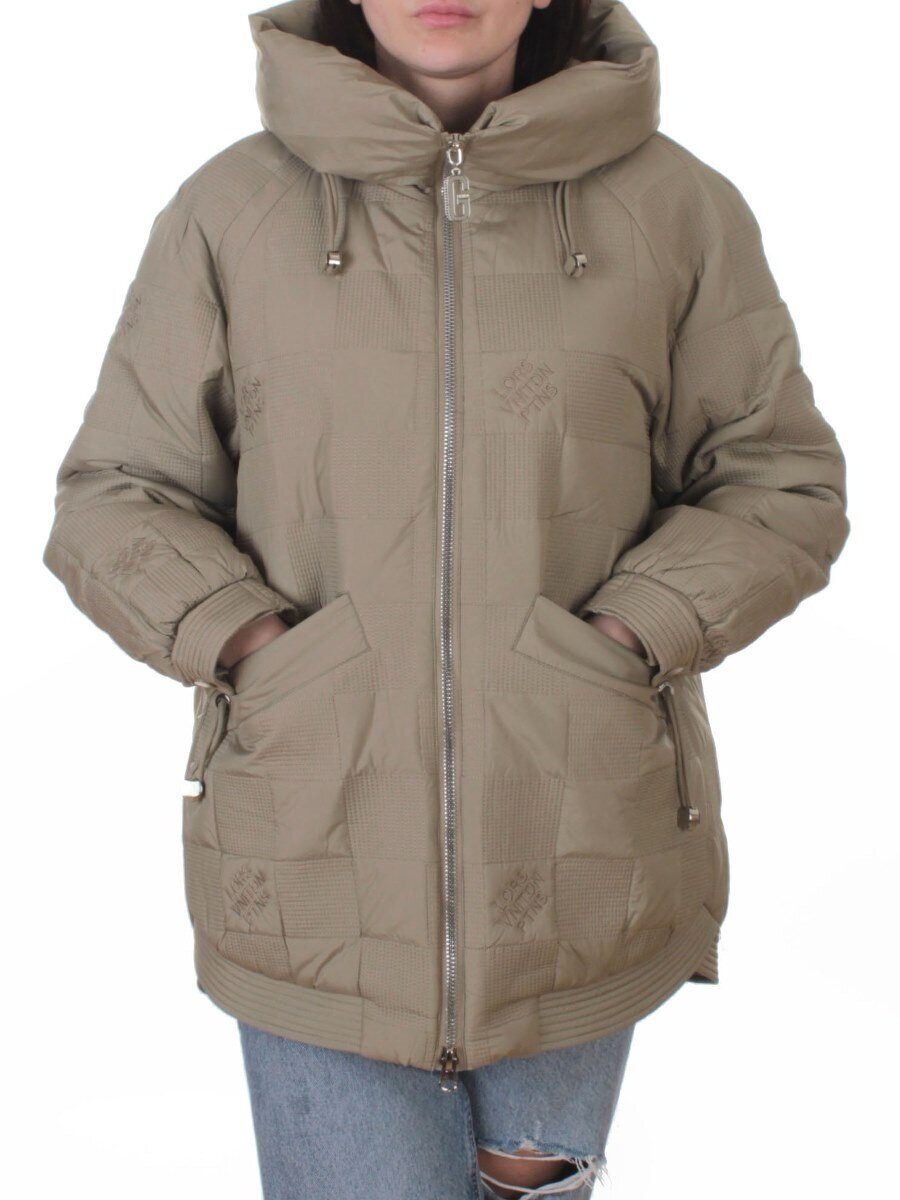 A05 BEIGE/GREEN Куртка стеганая зимняя женская (150 гр. холлофайбер)