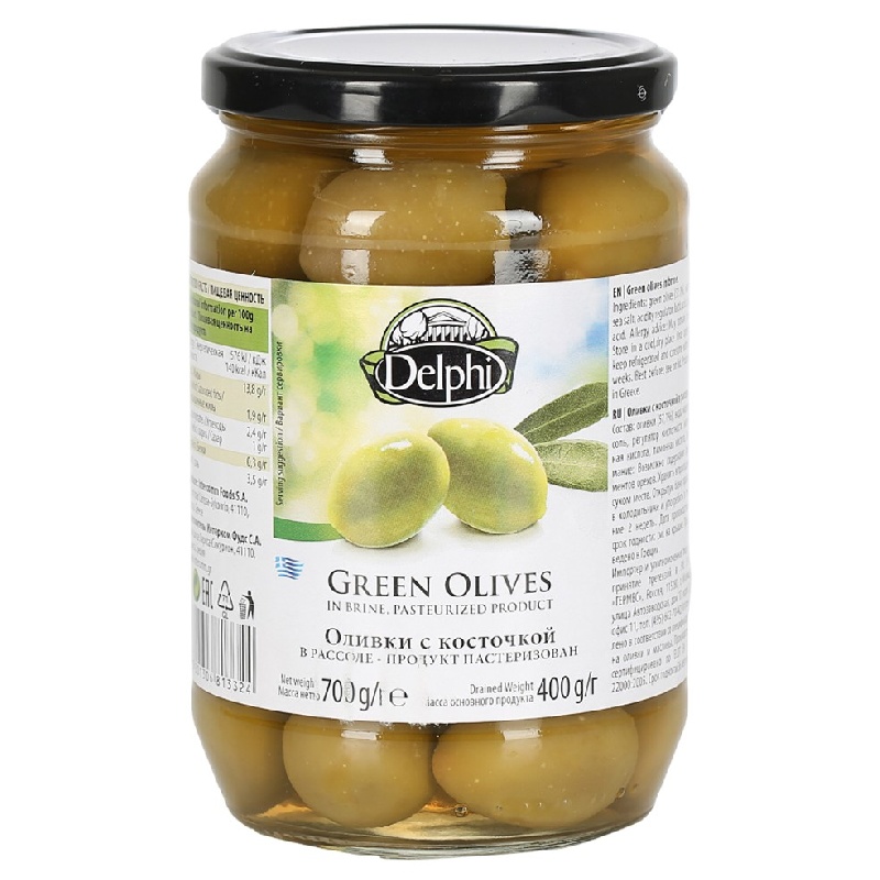 Оливки DELPHI с косточкой в рассоле /стекло/ 700г*12