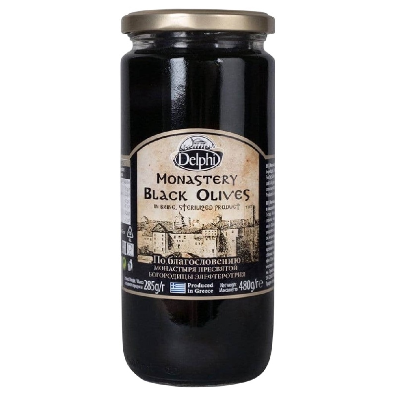Маслины DELPHI Монастырские с косточкой в рассоле /стекло/ 480г*12