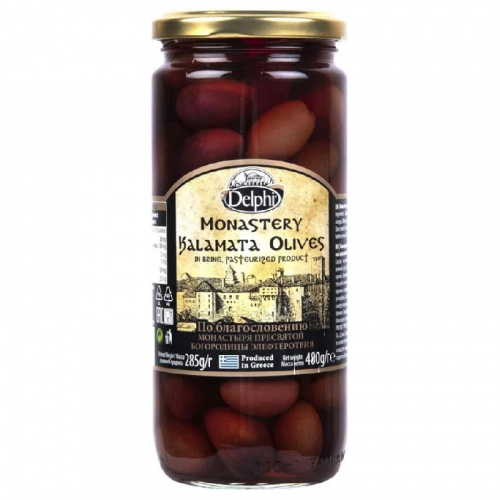 Маслины DELPHI KALAMATA Монастырские с косточкой в рассоле /стекло/ 480г*12