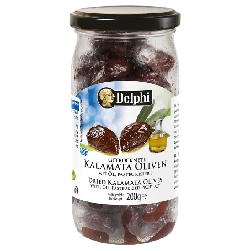 Маслины DELPHI KALAMATA с косточкой сушеные /стекло/ 200г*12