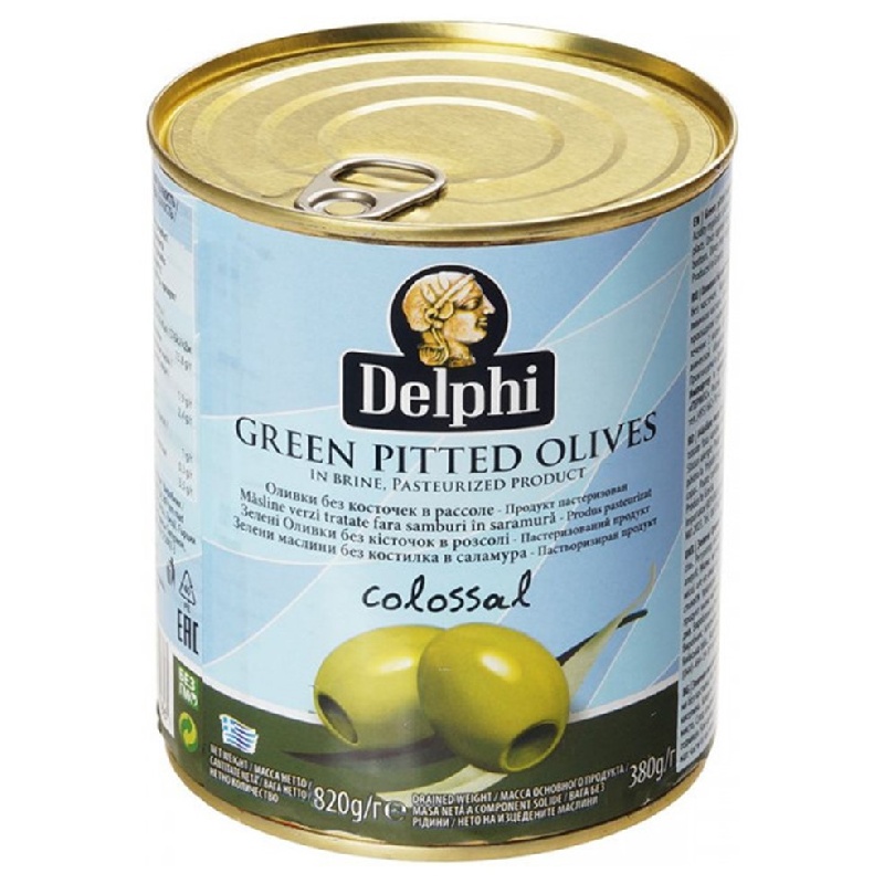 Оливки DELPHI без косточек в рассоле COLOSSAL 121-140 /жесть/ 820г*12