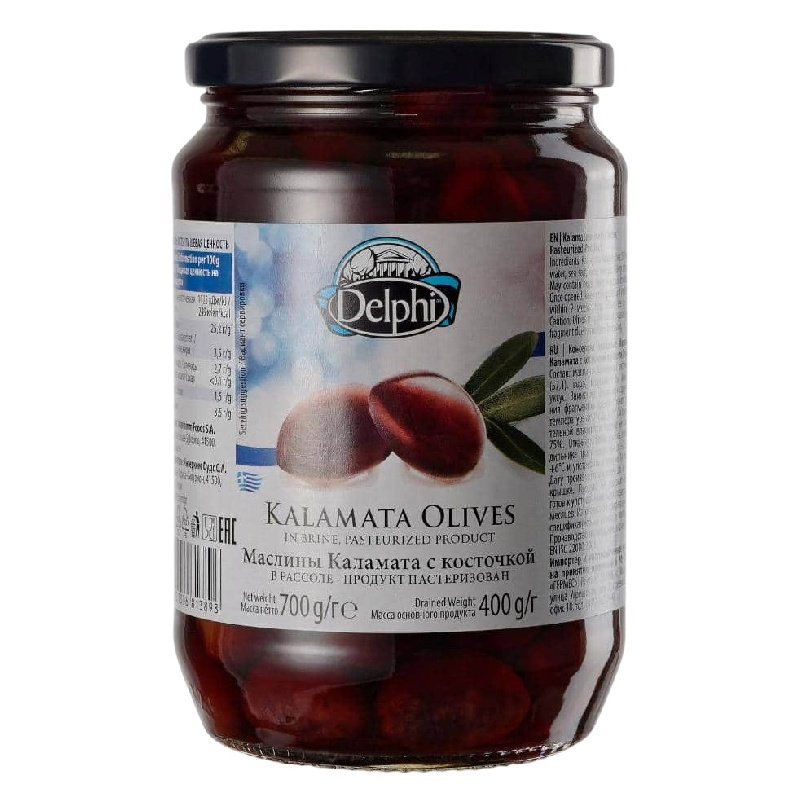 Маслины DELPHI KALAMATA с косточкой в рассоле /стекло/ 700г*12