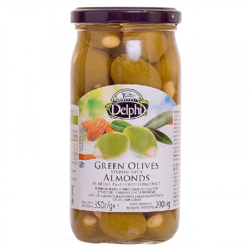 Оливки DELPHI фаршированые миндалем в рассоле /стекло/ 350г*12