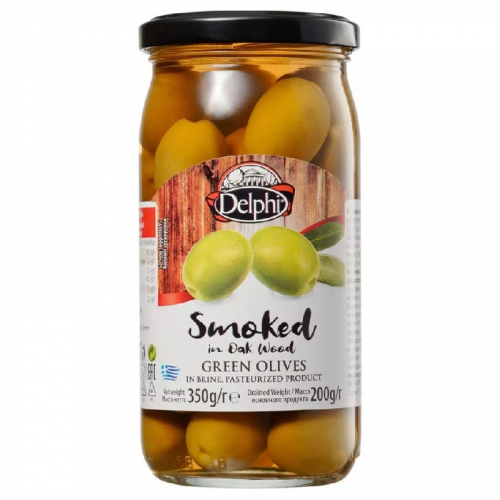 Оливки DELPHI SMOKED с косточкой копченые в рассоле /стекло/ 350г*12