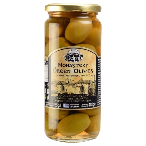 Оливки DELPHI Монастырские с косточкой в рассоле /стекло/ 480г*12