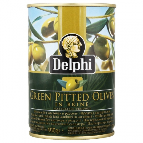 Оливки DELPHI без косточки SUPERIOR 261-290 /жесть/ 400г*12