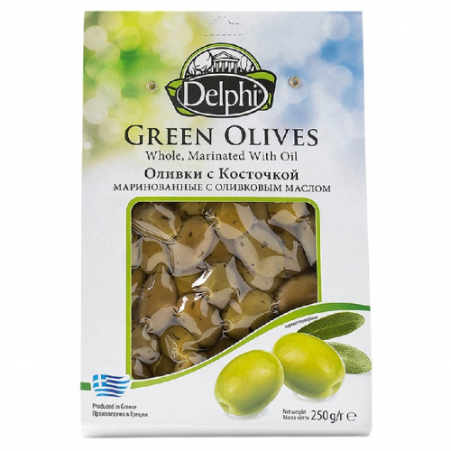 Оливки DELPHI с косточкой маринованные с оливковым маслом /вакуум/ 250г*8
