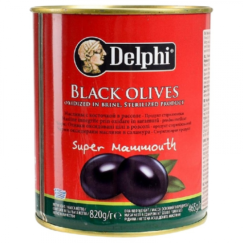 Маслины DELPHI с косточкой в рассоле Super Mammouth 91-100 /жесть/ 820г*12