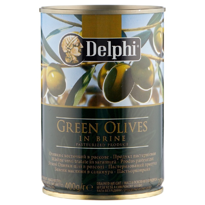 Оливки DELPHI с косточкой SUPERIOR 261-290 /жесть/ 400г*12