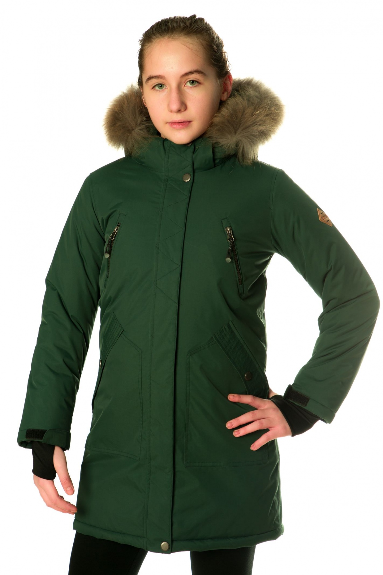 Парка (подростк.) жен. без меха DISUMER 883-2 т.изумруд