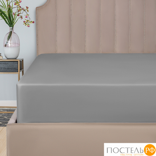 DOME ЛОРЕНО с-сер Простыня на резинке 160х200+25 (см), 1пр., хл/сат