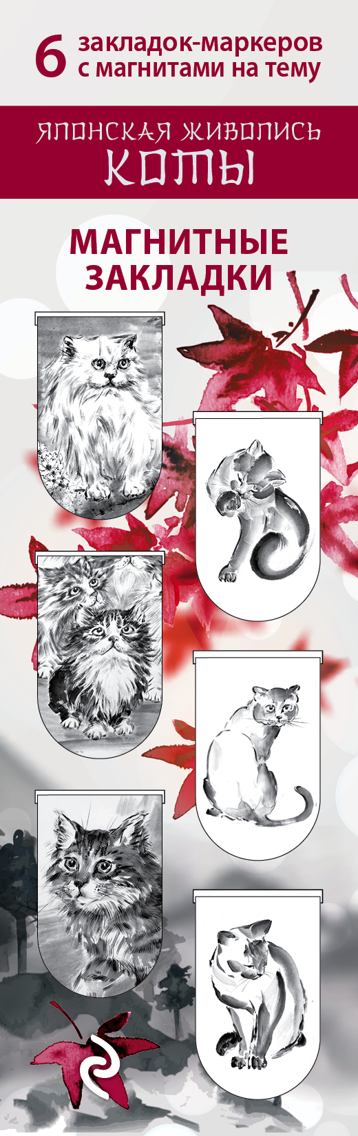 Магнитные закладки. Японская живопись. Коты (6 закладок полукругл.)