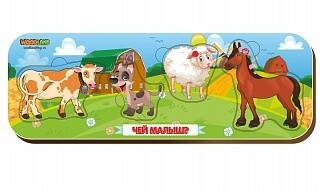 Деревянная рамка-вкладыш двойная «Чей малыш?», корова-собака-овца-лошадь (Арт. 011903)