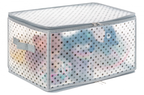 Кофр складной для хранения 40*30*25 см "Горошек на серебре" на молнии, пластик.