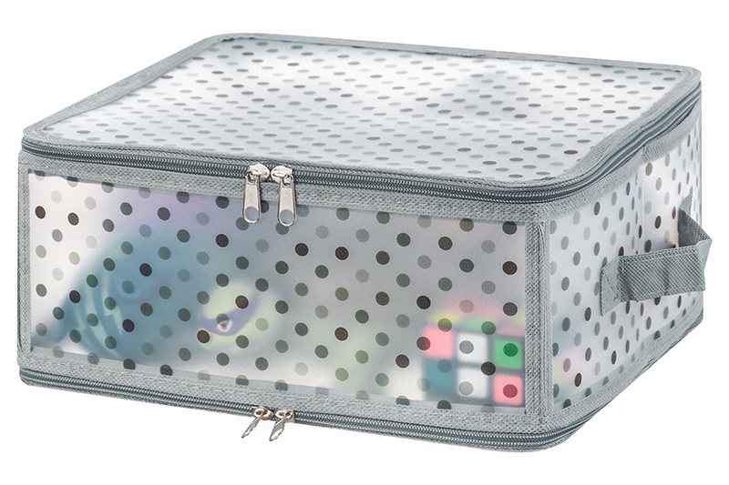 Кофр складной для хранения 30*28*15 см "Горошек на серебре" на молнии, пластик.