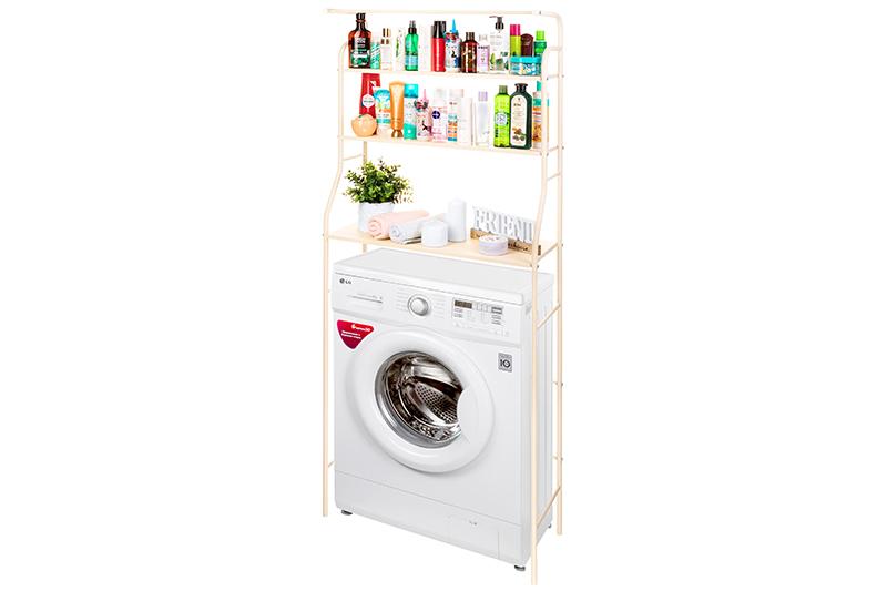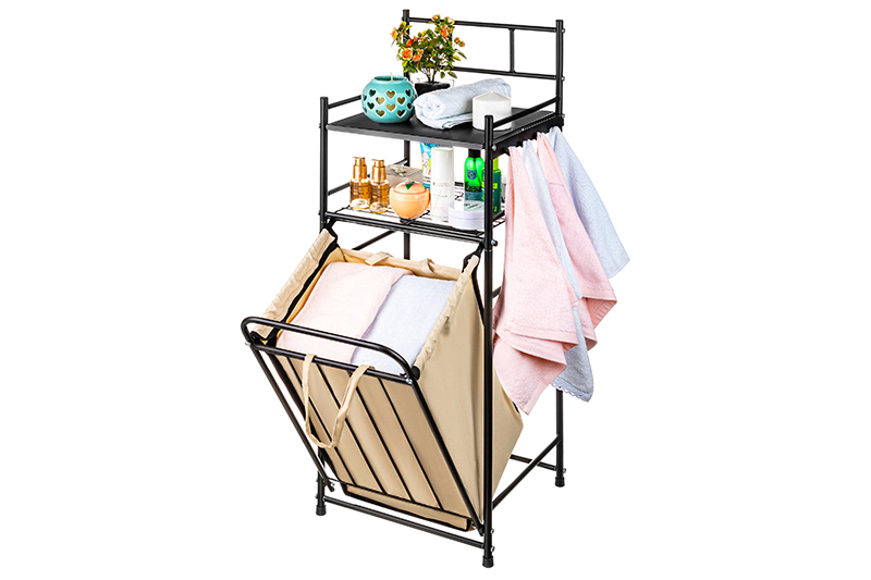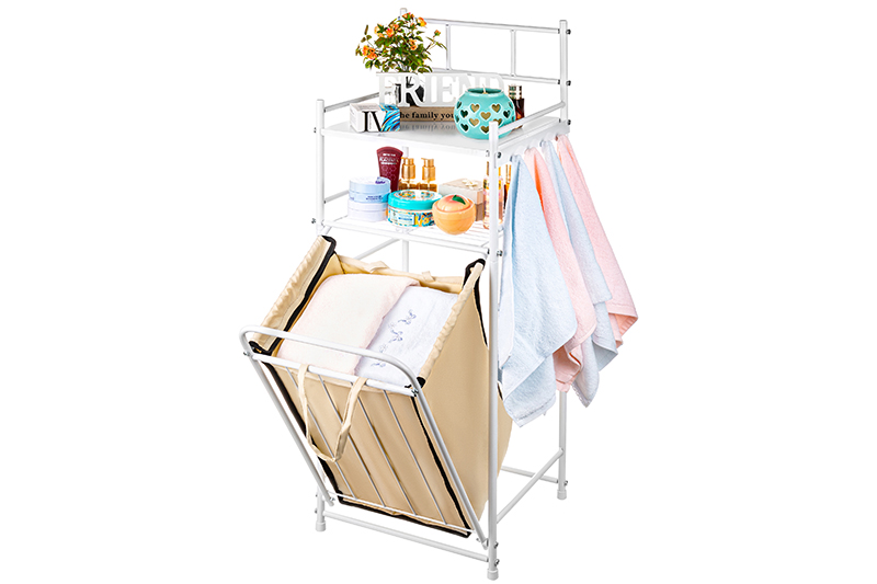 Стеллаж с 2-мя полками и корзиной для белья 40*35*93 см "Бежевый"со светл.корз., с дугообразн.стойк.