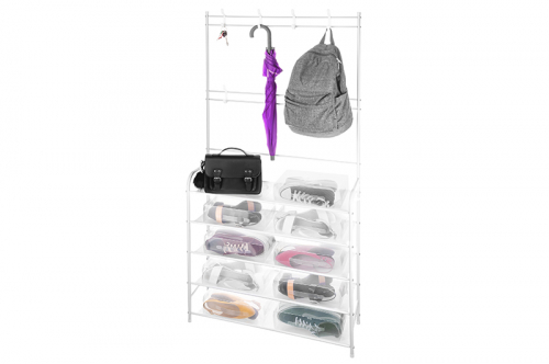 Вешалка напольная с полками для обуви 60*40*175 см + деревянная полка