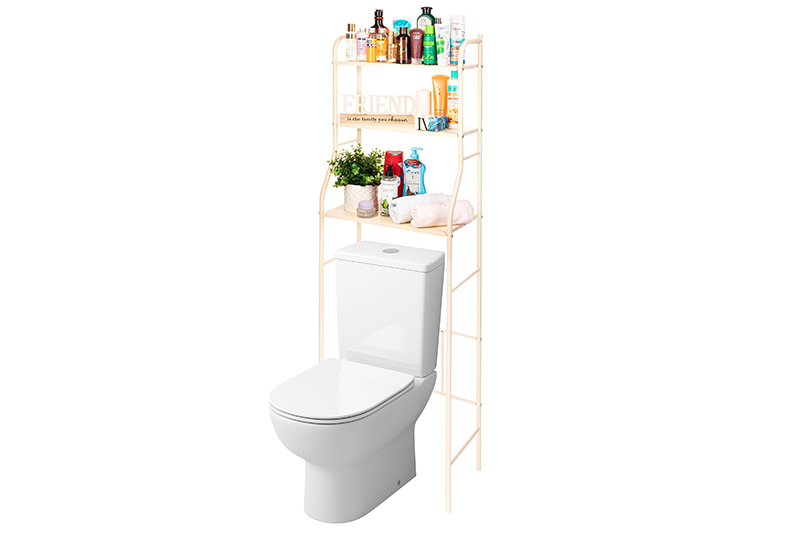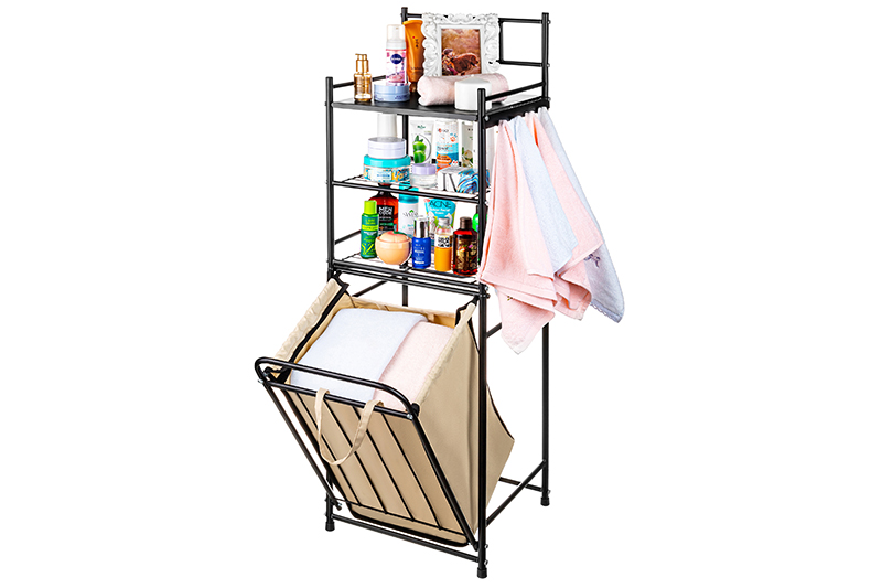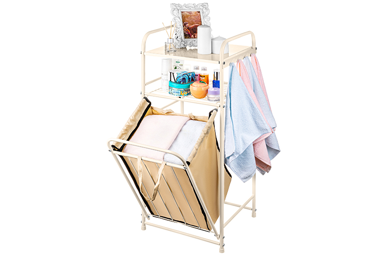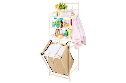 Стеллаж с 2-мя полками и корзиной для белья 40*35*93 см "Бежевый"со светл.корз., с дугообразн.стойк.