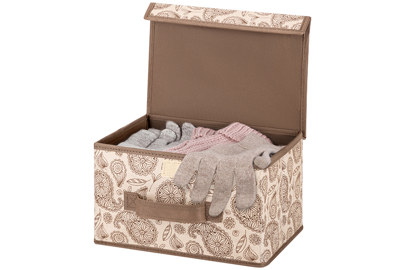 Короб складной для хранения 26*20*16 см "Пейсли бежево-коричневый" + ручка, крышка на липучке