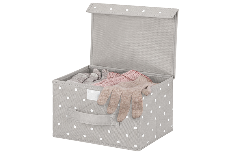 Короб складной для хранения 26*20*16 см "Серый горошек" + ручка, крышка на липучке